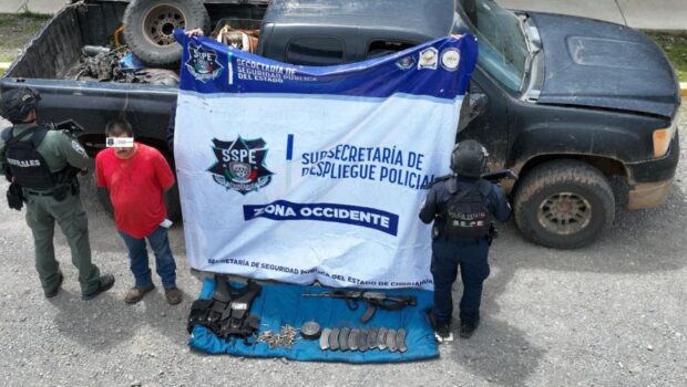 La Secretaría de Seguridad Pública del Estado (SSPE), a través de la Subsecretaría de Despliegue Policial y la Dirección Operativa Zona Occidente, realizó la detención de un hombre en posesión de armamento, equipo táctico y cartuchos útiles, tras un operativo de prevención y disuasión de violencia en el municipio de Madera.