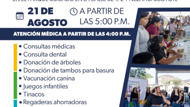 El Gobierno del Estado y el Gobierno Municipal se suman para llevar todos sus servicios gratuitos a través de Unidos por Cuauhtémoc, que se llevará a cabo el jueves 21 de agosto, en el parque de las calles 82 y Media y Nezahualcóyotl, en la colonia Tierra Nueva.