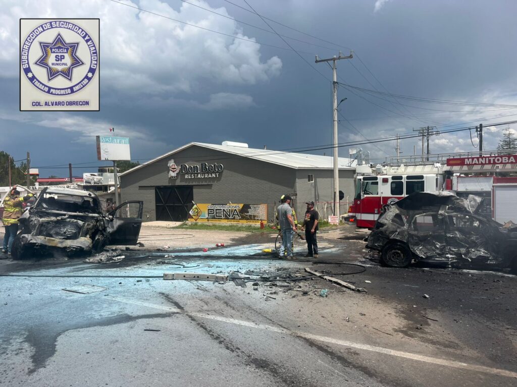 Cuauhtémoc, Chih.- La tarde de este viernes 29 de agosto, alrededor de las 14:00 horas, la Policía Preventiva del seccional de Álvaro Obregón atendió el reporte de un accidente múltiple sobre la carretera estatal número 5, a la altura del kilómetro 21+500.