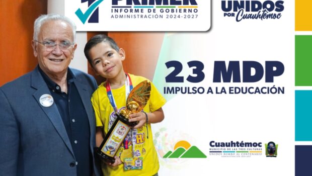 Cd. Cuauhtémoc, Chih.- Durante este primer año de Administración Municipal del alcalde Beto Pérez, se destinaron $23,055,017.48 en apoyos a la educación, lo que contempla infraestructura en escuelas, con el propósito de que los alumnos estudien en entornos dignos y tengan un mejor aprovechamiento escolar.