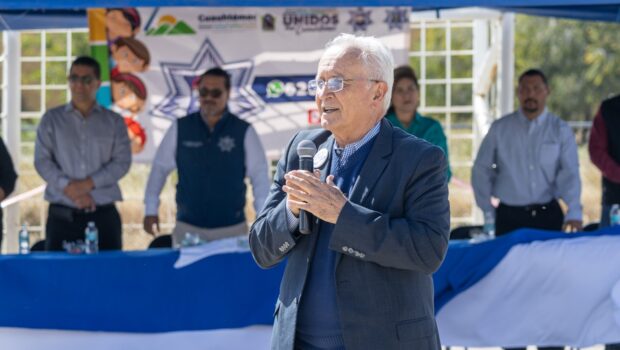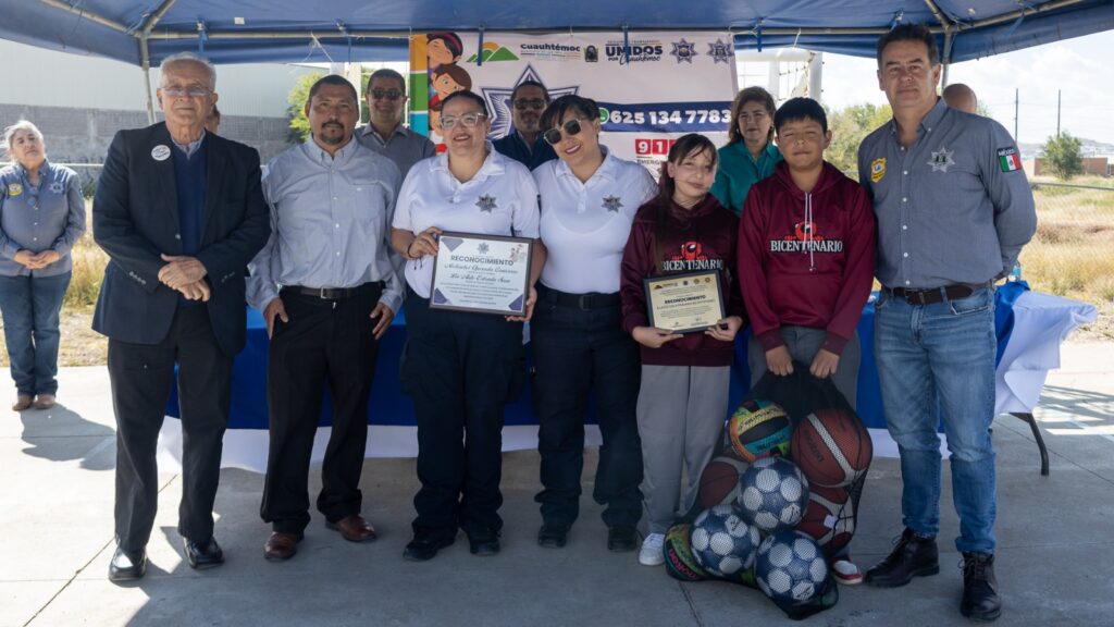Para concluir la ceremonia, el presidente municipal Beto Pérez y el coordinador de Programas Preventivos, Luis Eduardo Flores Gutiérrez, entregaron balones y un reconocimiento a la escuela por su colaboración en la implementación del programa.