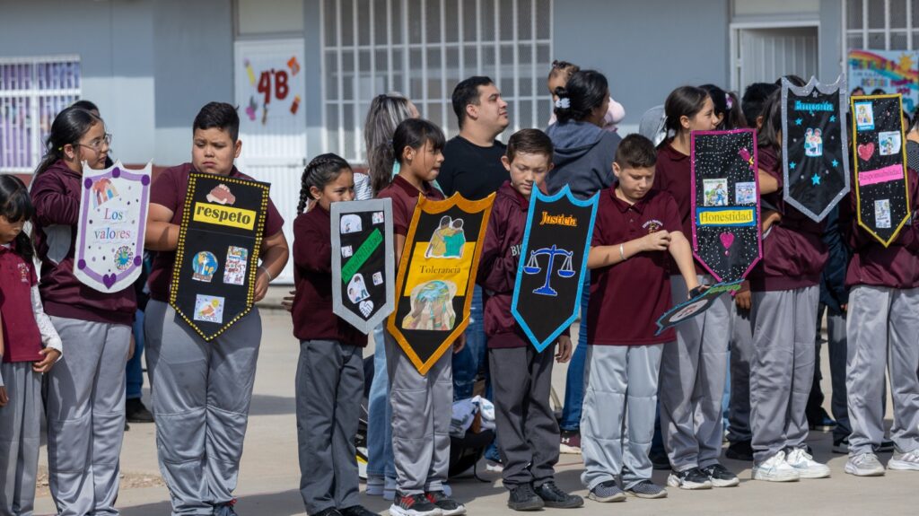 Los alumnos de primero y segundo grado interpretaron la canción “Que canten los niños”, mientras que los de sexto participaron en un Desfile de Valores.