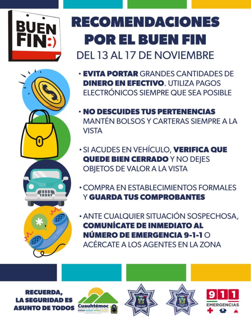 Inicia el Buen Fin, alerta Policía Municipal para evitar ser víctima de robo, extorsión o fraude