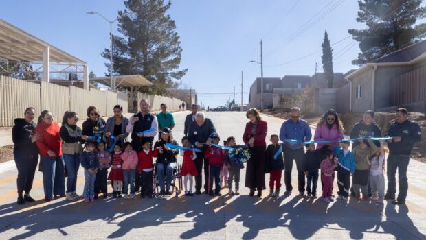 Cd. Cuauhtémoc, Chih.- El alcalde Beto Pérez encabezó la entrega de la pavimentación de la calle 32a, entre Nuevo León y Coahuila, y de la calle Coahuila, entre 30a y 32a, obra que fue financiada con recurso del Presupuesto Participativo.