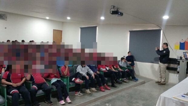 La intervención efectuada este viernes 28 de noviembre, estuvo a cargo del Grupo de Orientación Escolar Chihuahuense (GOECHI) de la Agencia Estatal de Investigación (AEI) Zona Norte, y comenzó en punto de las 9:00 en el salón de usos múltiples del plantel escolar, ubicado en la localidad de Ángel Trías.