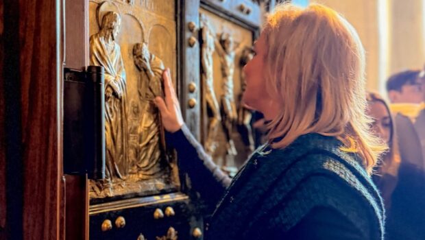 Obsequian réplica de Puerta Santa a Gobernadora Maru Campos, en el Vaticano