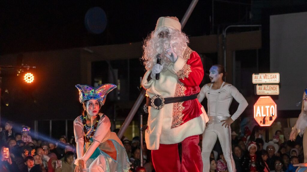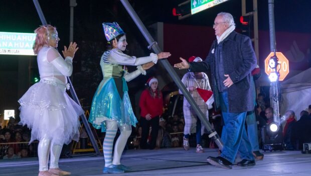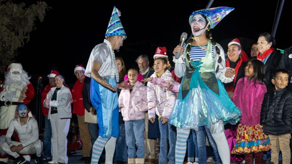 Cd. Cuauhtémoc, Chih.- La noche del 7 de diciembre, se llevó a cabo el Encendido de Luces, en la Plaza Principal, evento encabezado por el alcalde Beto Pérez, que contó con el espectáculo “Blanca Navidad”, a cargo de Cirko Alebrije, de Guadalajara, Jalisco.