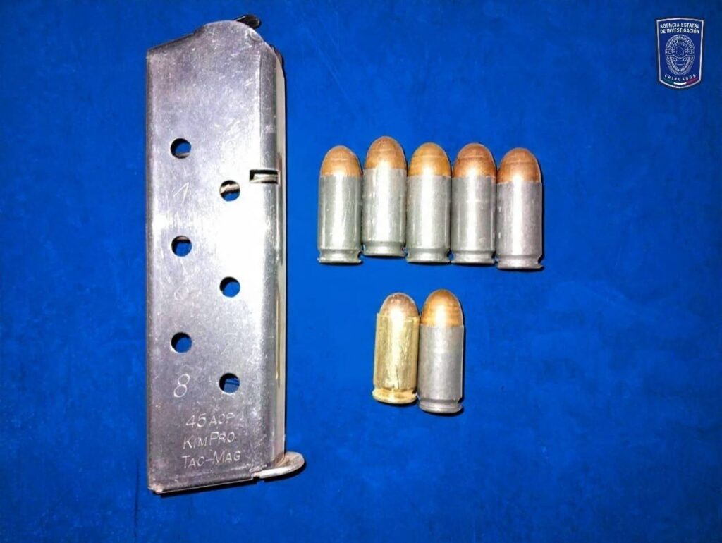 Arma de fuego corta calibre .45mm., con su cargador y siete cartuchos útiles; arma larga calibre .223, con un cargador abastecido con 24 cartuchos útiles, además, encontraron diversos casquillos percutidos calibre 7.52 x 39 y .223 milímetros.