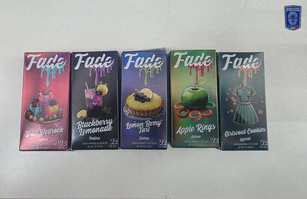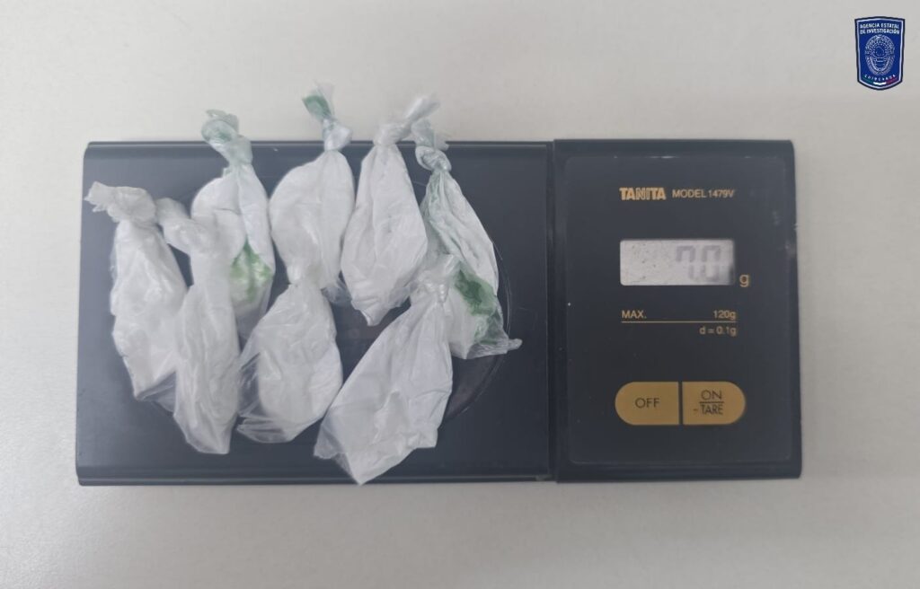 Asimismo, en el asiento del copiloto se localizaron 8 envoltorios con una sustancia blanca con las características propias de la cocaína con un peso total de 7 gramos; además, 5 cajas de cartón que contenían vapeadores con extracto de mariguana, conocidas como WAX.