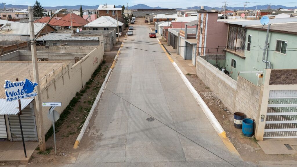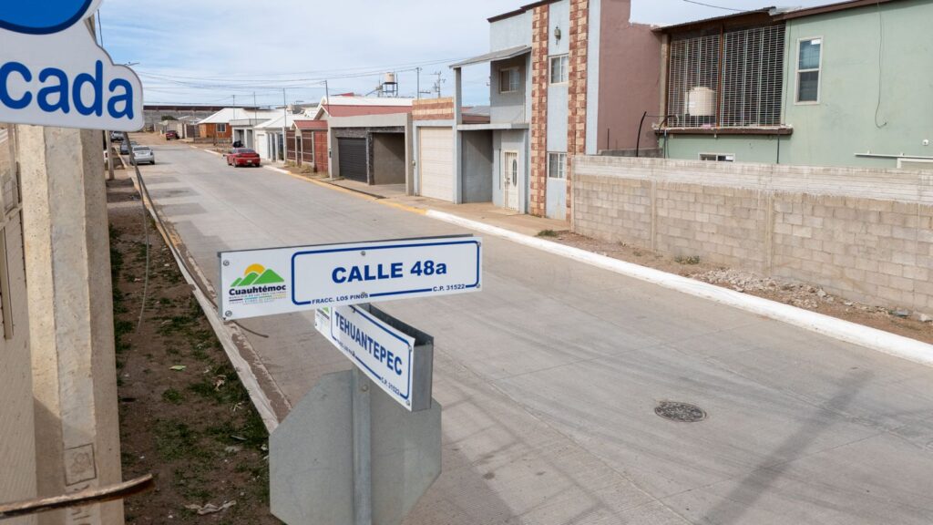 Se concluyó la pavimentación con concreto hidráulico de un tramo de la calle Tehuatepec, entre 48a y 50a, en la colonia Los Pinos. Fue posible gracias a la aportación de recursos por parte de los vecinos y el Consejo de Urbanización Municipal (CUM).