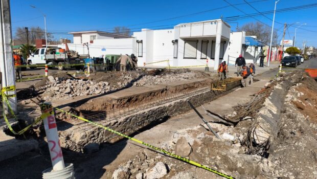 Se trabaja en la reparación integral de un dren pluvial en la calle Ojinaga, donde la Dirección de Obras Públicas lleva a cabo el retiro de sedimentos y cúmulos de basura que con el tiempo obstruyen la circulación del agua.