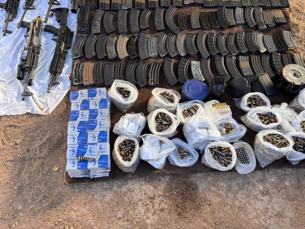 Tras recibir el reporte, los elementos desplegaron un operativo de inteligencia y rastreo de objetivos prioritarios, el cual derivó en la localización del inmueble. En el lugar se aseguraron 16 vehículos, de los cuales cuatro contaban con blindaje. Asimismo, se contabilizaron 19 armas largas, dos armas cortas, dos lanzagranadas, 5,839 cartuchos útiles, siete granadas calibre 40 mm, una granada de mano, así como 21 cargadores de distintos calibres y siete cargadores tipo tambor.