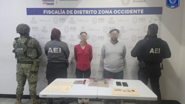 El informe señala que en el lugar se detuvo a Alejandro M. O., de 31 años y a Jessica Ivette C. O., de 36 años de edad, por delitos contra la salud y la posesión de un arma de fuego.