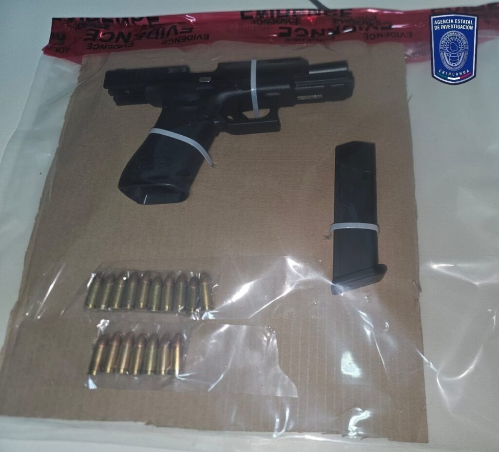 En el lugar se aseguró un arma tipo pistola marca Glock, calibre 9 milímetros, con un cargador abastecido con 17 cartuchos útiles, así como 23 cartuchos útiles, también calibres 9 milímetros.