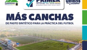 Cd. Cuauhtémoc, Chih.- En este primer año de gobierno del alcalde Beto Pérez, se instaló pasto sintético en la cancha