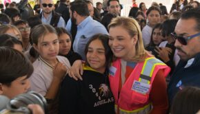 La gobernadora Maru Campos arrancó en la Escuela Secundaria 3044 de la ciudad de Chihuahua el Programa Juntos Construimos, con