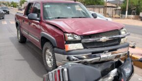 Cuauhtémoc, Chih., seccional de Álvaro Obregón.- Un choque entre dos vehículos se registró la mañana del 7 de abril al