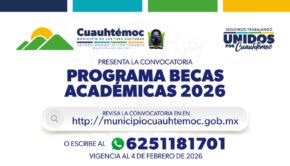 El Gobierno Municipal de Cuauhtémoc a través de la Dirección de Desarrollo Social, presenta la convocatoria de Becas Académicas 2026.Se
