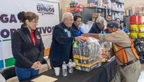 Cd. Cuauhtémoc, Chih.- El alcalde Beto Pérez encabezó la entrega de 412 paquetes de uniformes al mismo número de empleados