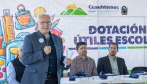 Cd. Cuauhtémoc, Chih.- El alcalde Beto Pérez encabezó el inicio de la entrega de paquetes de útiles escolares que llegarán