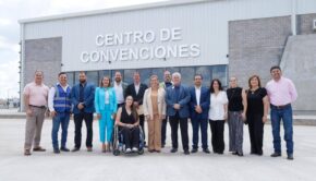 La gobernadora Maru Campos realiza una gira de trabajo por Cuauhtémoc, donde arribó al Centro de Convenciones, obra que está