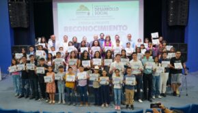 Cd. Cuauhtémoc, Chih.- El alcalde Beto Pérez encabezó la ceremonia de entrega de reconocimientos e incentivos económicos, a 50 estudiantes