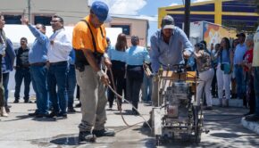 Anáhuac, Cuauhtémoc.- El alcalde Beto Pérez y el presidente seccional de Anáhuac, Homero Luján, encabezaron el arranque de la remodelación