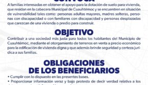 Convocatoria dirigida a personas en situación de vulnerabilidad, para terrenos en el fraccionamiento Bicentenario. Se puede consultar en el siguiente